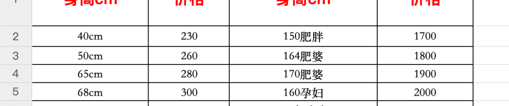 工厂发来的硅胶娃娃类型报表。身高为160cm的“孕妇娃娃”也出现在报价表中供选择。